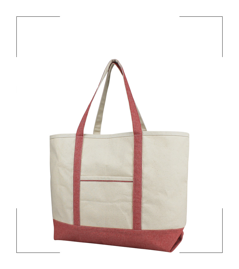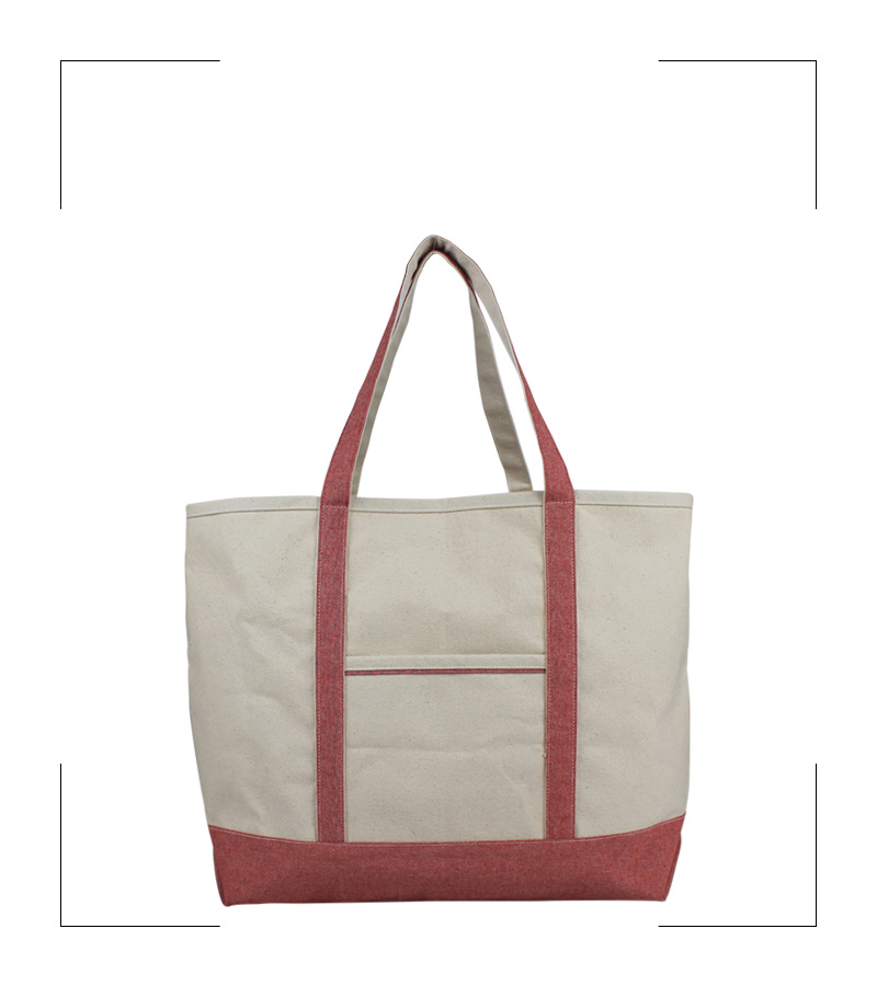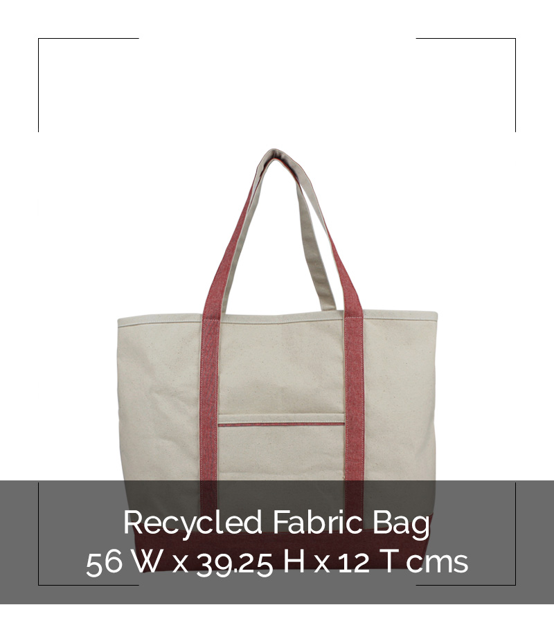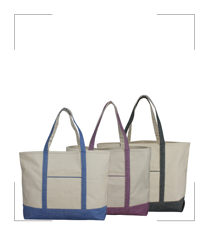 12 Oz Natural Cotton Bag with 6 Oz Recycle Cotton attached in Bottom. One outside Pocket with Recycled fabric Piping