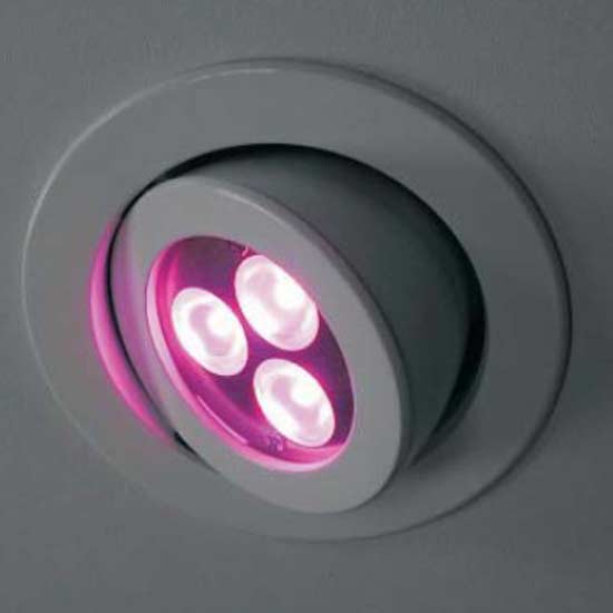 This RGB LED spotlight features a sturdy aluminum casing painted in white. The rotational design allows multi-directional illumination. Equipped with three light emitting diodes, this spotlight provides bright and stable light beams in pink. The dramatic effect is perfect for stage applications.