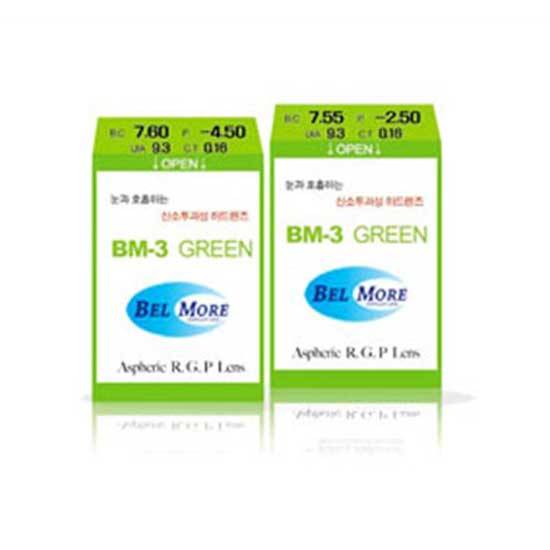 Displayed are two packs of RGP contact lenses. The lenses can ensure a healthy wearing experience as they are permeable, which allow infiltration of oxygen. In addition, clear vision is also guaranteed as the lenses are designed to cure astigmatism.