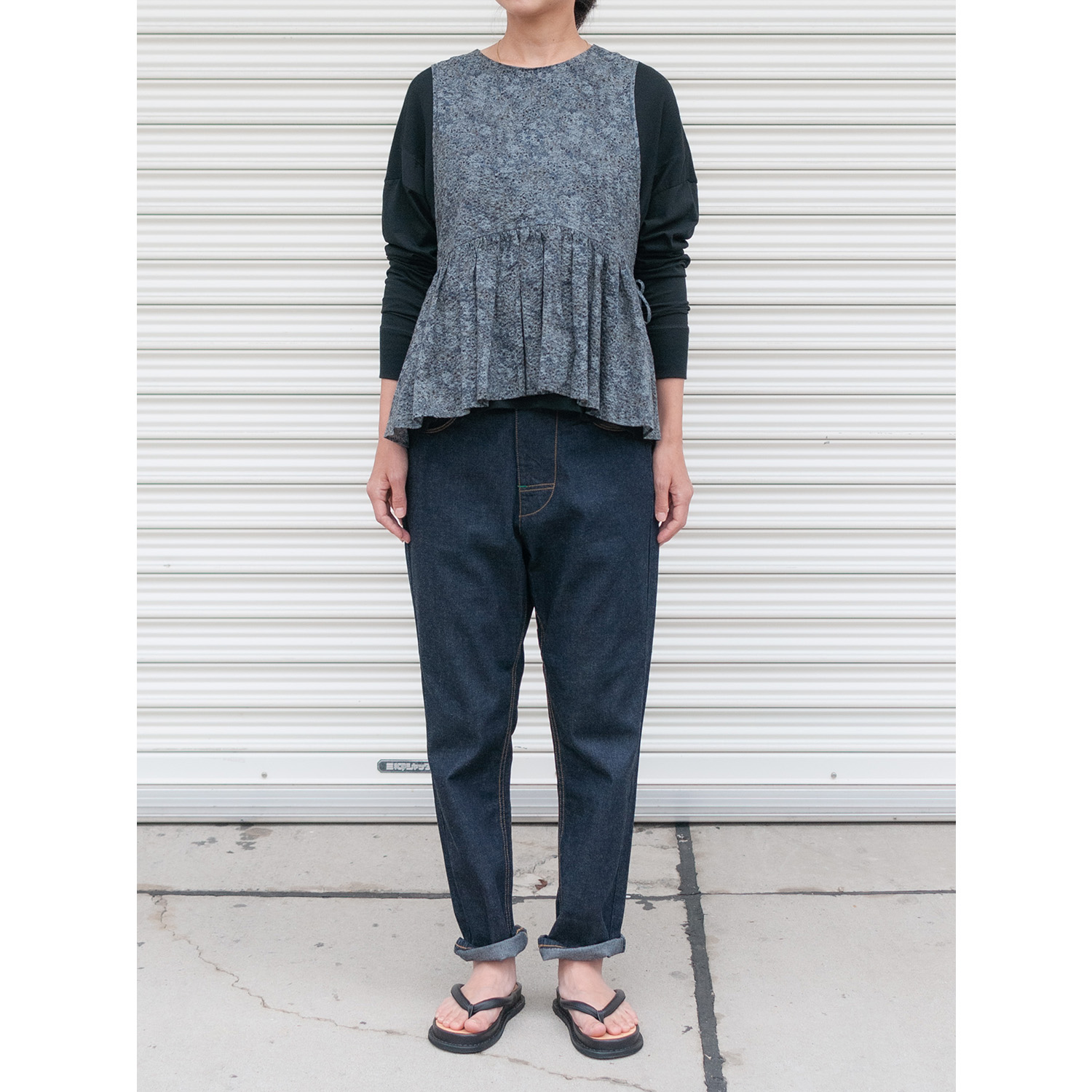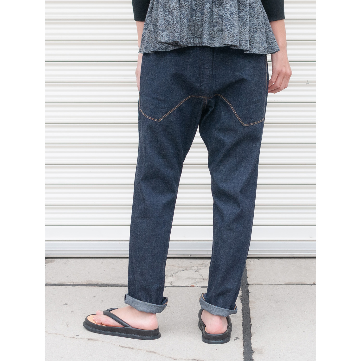 ポケット口にセルビッヂを配したラプレ定番のライトオンスデニム。2014年からのロングセラー。ウエスト位置を下げ気味に着用し、トップスをインしてハイウエストな感じで着用も。ヒップに抑えた変形でお尻が可愛いマストアイテムです。