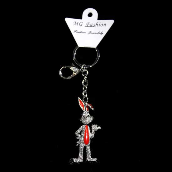 A 3D rabbit charm is attached to this keychain. The rabbit charm is completely embellished with small shimmering stones, except for its stomach and ears, which are painted in red. Showcasing outstanding craftsmanship, the silver keychain is delicately cute and polished. Get this adorable keychain for your keys.