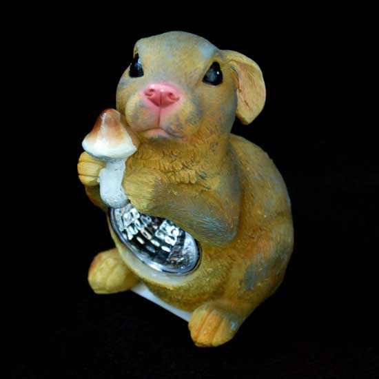 Shown here is a rabbit-shaped LED light with a solar panel. It is made of resin with fine finishing for a lifelike appearance. Add this decorative light to gardens and balconies.