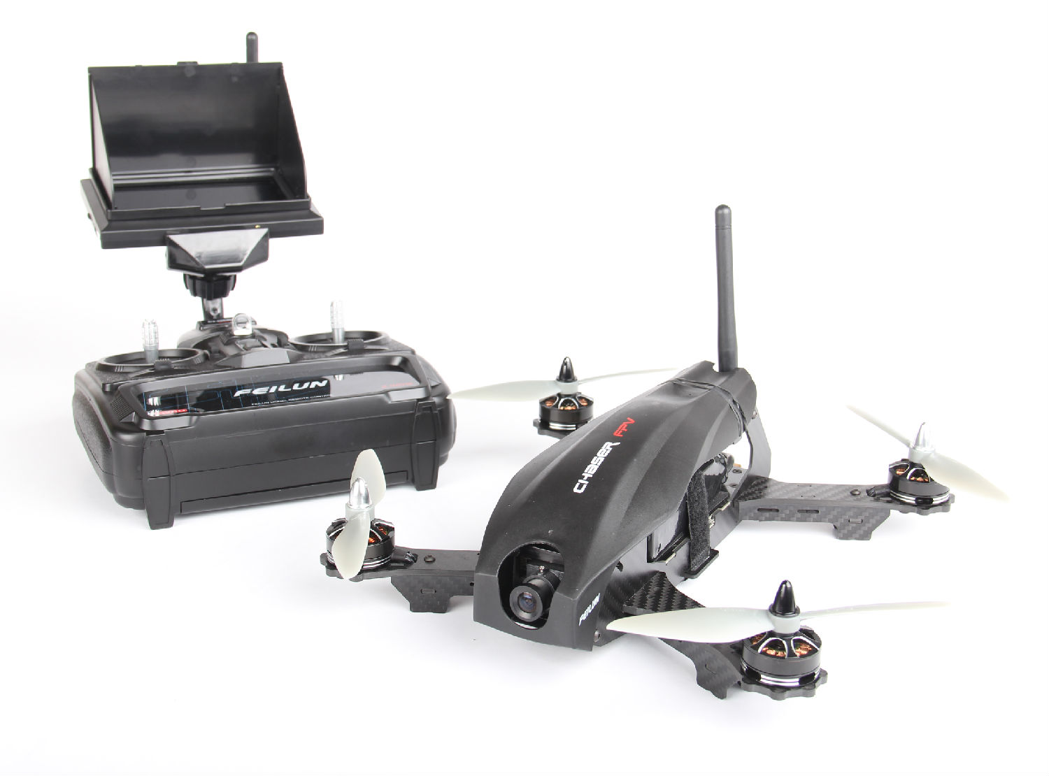 Featured here is a FPV chaser racing drone with an operation distance of 350 meters. It comes in a quadcopter design with a camera in the front and an antenna at the back. This drone is easy to control and offers stable flight performance.