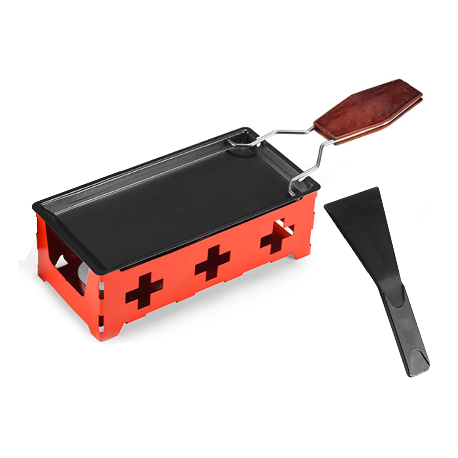 Rectangular-shaped Raclette Roaster with Wooden Handle includes the following features :