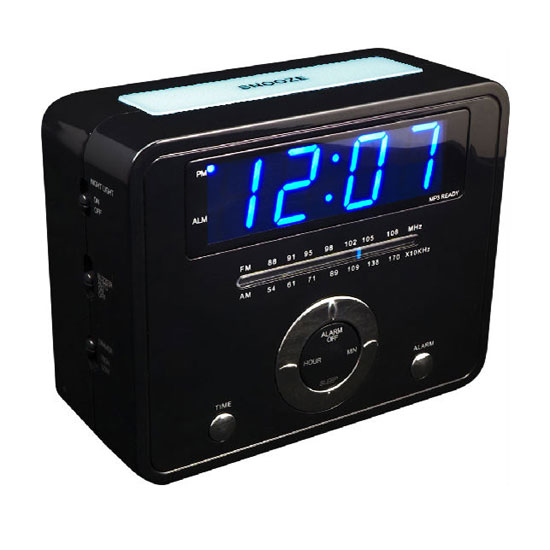Pictured is a radio clock with an LED display for easy reading of time. It is also equipped with night light function. The clock functions as a radio and mp3 player while reporting time.