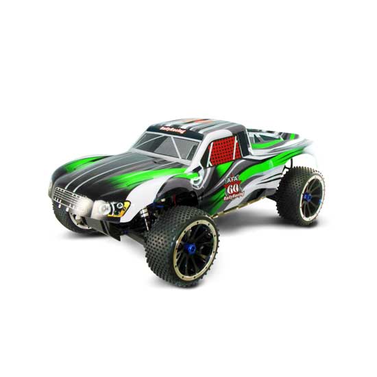This stylish R/C car is designed into a racing car with interlacing gray, white and green patterns. It comes with a powerful engine system that can greatly enhance your playing experience. Its fiberglass disc brakes also ensure its better performance on the track.
