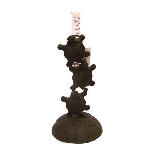 This is a frog rain gauge for collecting the amount of rain in gardens. The rain gauge has an ornamental exterior.