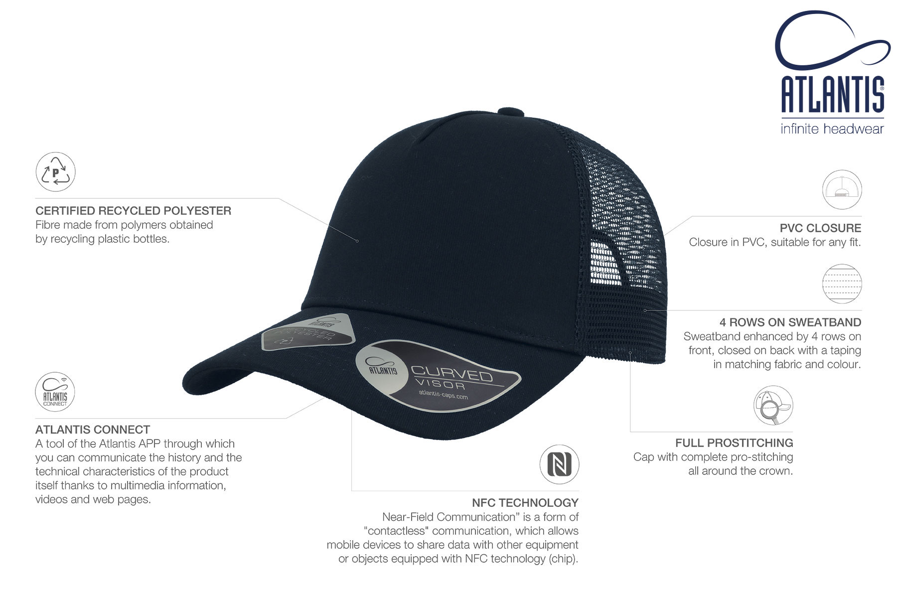 Baseball Cap combining the recycled polyester to the Atlantis Connect technology.