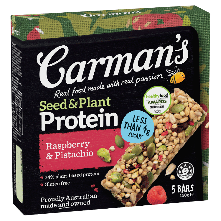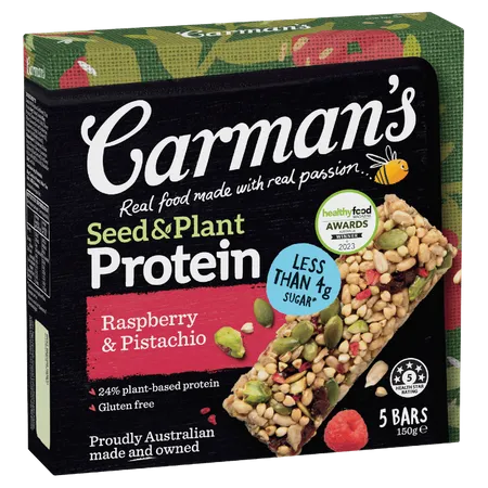 Combining the natural power of whole seeds and pistachios with deliciously tangy raspberries. Contain less than 4g sugar per bar suitable for who don't like sweet.