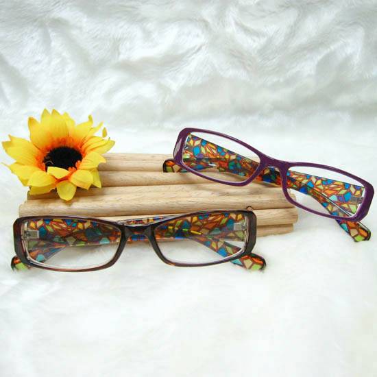 These reading glasses showcase a sense of modesty with a rectangular frame. The thick temples are arrayed with colorful patterns, exuding remarkable beauty. They provide you premium optical clarity in style.