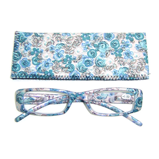 This is a pair of reading glasses with a full-rimmed design. The blue rose patterns add a feminine accent to the reading glasses. It comes with a matching pouch for adequate protection when you are on the go.