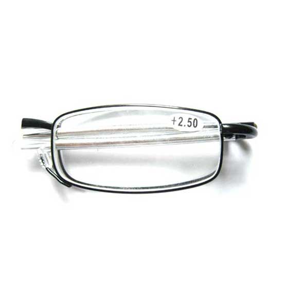 Displayed is a pair of reading glasses with a foldable design. Featuring thinly lined rims, this pair of reading glasses is light yet durable. This pair of folding reading glasses is very portable so that you can enjoy reading anywhere you go.