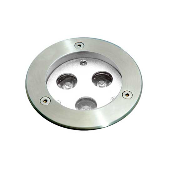 This recessed LED uplight is equipped with three high-brightness LEDs for satisfactory performance. They feature low energy consumption for reduced power cost. The transparent shade is made of tempered glass for added durability.
