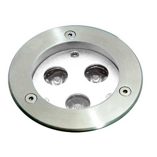 This recessed LED uplight is housed in a casing made of die-cast aluminum for reliable protection. Three pieces of high-brightness LEDs are installed in the uplight for excellent illumination. The tempered glass shade offers enhanced durability.