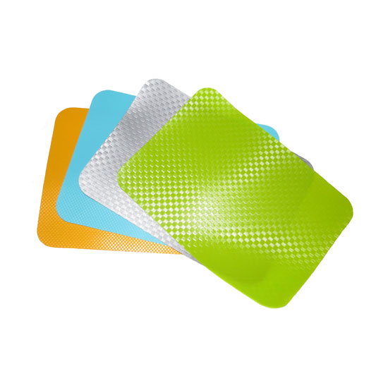 This is a placemat that is rectangular in shape. It is made of environmentally friendly and recyclable EVA in a bright color. With a trendy and unique look, this placemat is a great choice for decorating your tabletop.