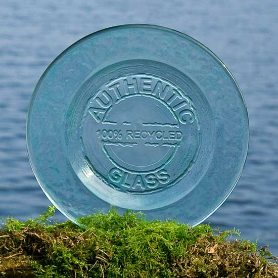 The authentic glass plate is made of 100% recycled glass for guaranteed beauty. The rigid construction promises lasting durability. This fabulous glass plate makes a wonderful decoration for households for enhanced sophistication.
