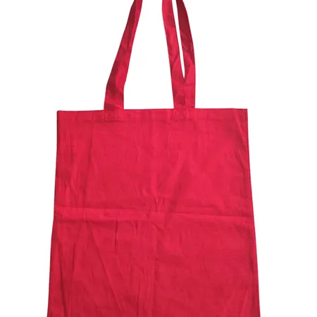 Red Red 100% Cotton bag with long handle. Size: 37x41x0 cm. Size: 37x41x0 cm / Handle: 2.5x64cm Cotton Self Handle. Print: W/o Print - Materials 100% Cotton, 120GSM. . Accessories tag,sattin label.