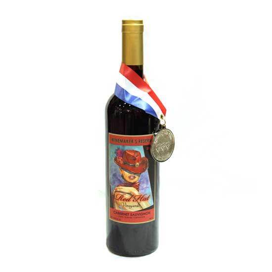 This is a bottle of Red Hat Vineyards Cab. S. from California, America. Using high quality Cabernet Sauvignon, this red wine is aged for 2 years for a rich taste. This award-winning table wine is medium dry, making it perfect for meats.