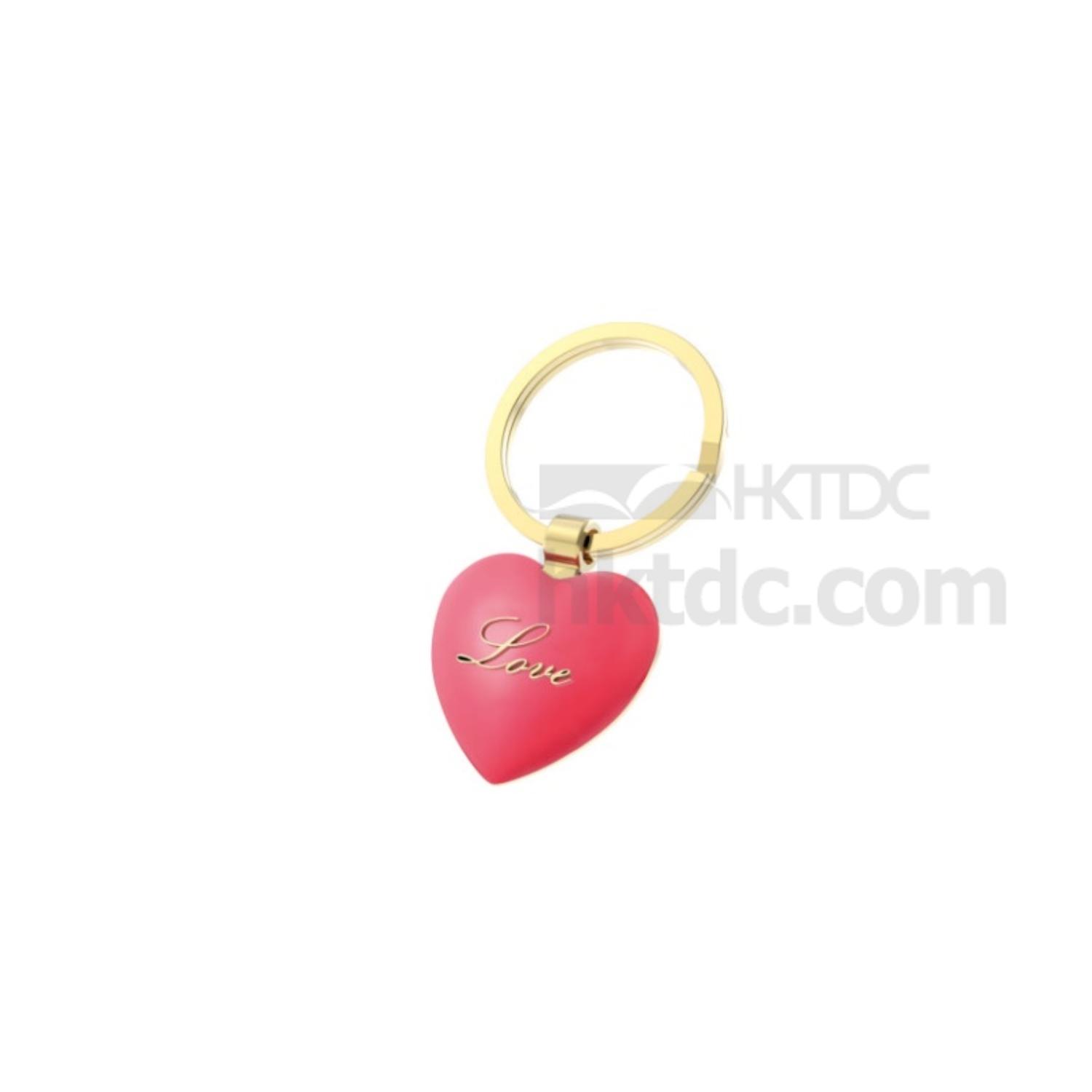 Red Heart Shape Metal Keychain with Love