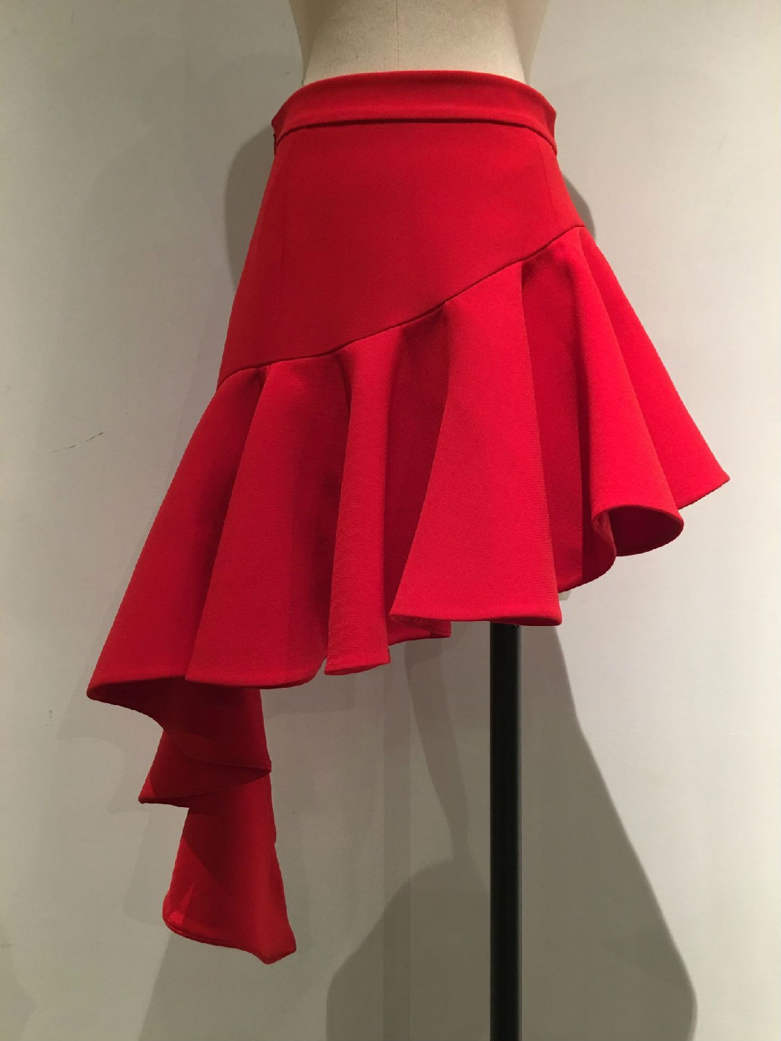 Red Skirt With Wave Hemline