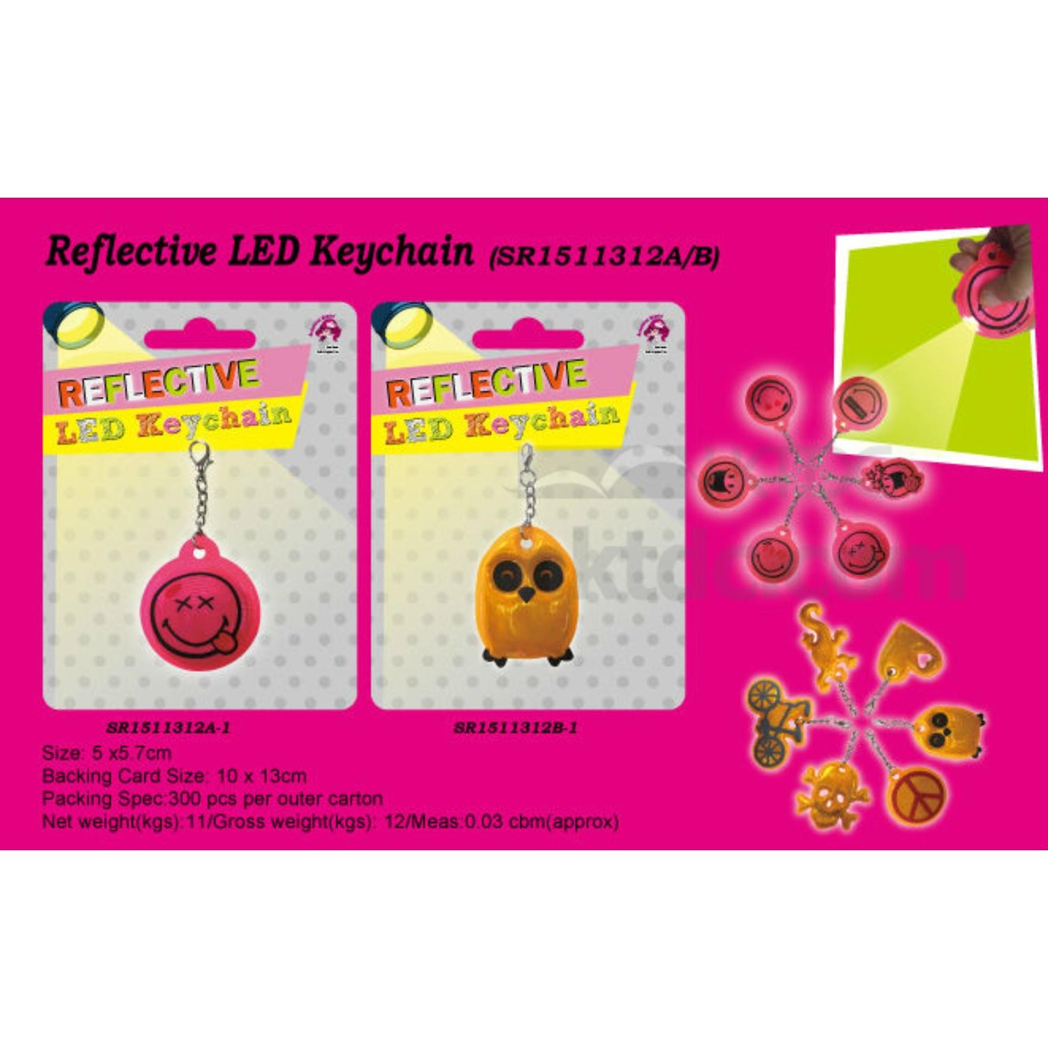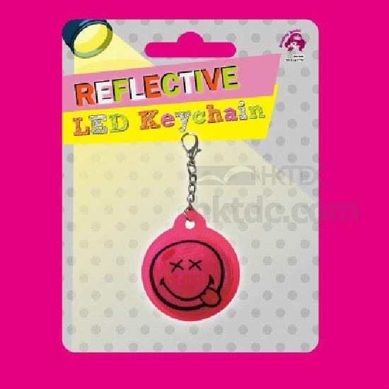 The presented keychain combines both decorative and functional purposes in one. Featuring a reflective surface, this keychain lets you spot your key without fumbling with your bag. A funny smiley with stuck out tongue and closed eyes is printed on a circular base and which gathers your keys with a lobster clasp. The integrated LED light enhances convenience to save your time from reaching the key hole in the dark.