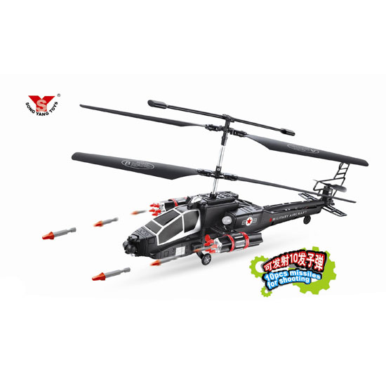 The outlined remote control helicopter is ready to fly. Equipped with a 4-channel design, this toy helicopter flies upward, downward, forward and backward. It can also move to the left or to the right. This remote control helicopter is fun to play with.