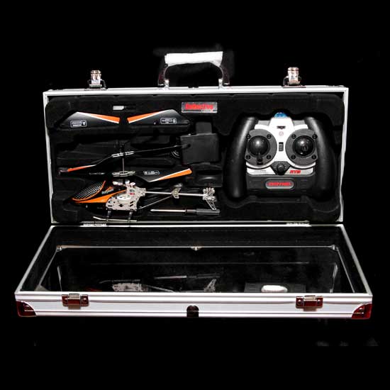 Presented here is a remote-controlled helicopter that boasts a sturdy metal construction. This toy helicopter is powered by 6 AA batteries, ensuring potent performance. It is surely an ideal collection for the toy helicopter lovers.