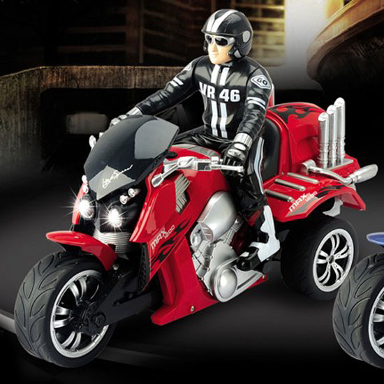 This R/C motorcycle is designed and crafted with close attention to details. The special motorcyclist figure further enhances its charm. Equipped with a powerful motor, this motorcycle awes with its outstanding speed.