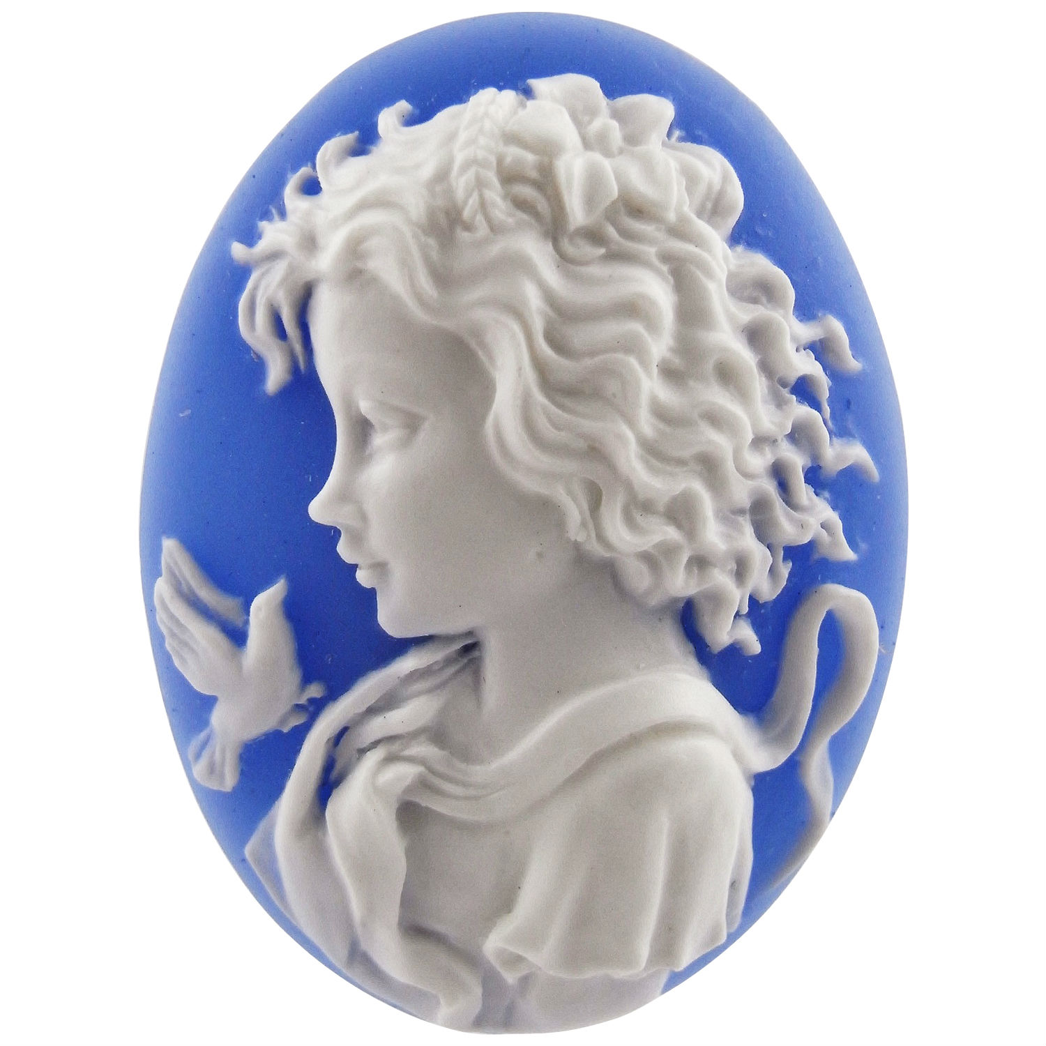 Riveting resin cameo that flaunts a fashionable and cultivated style.