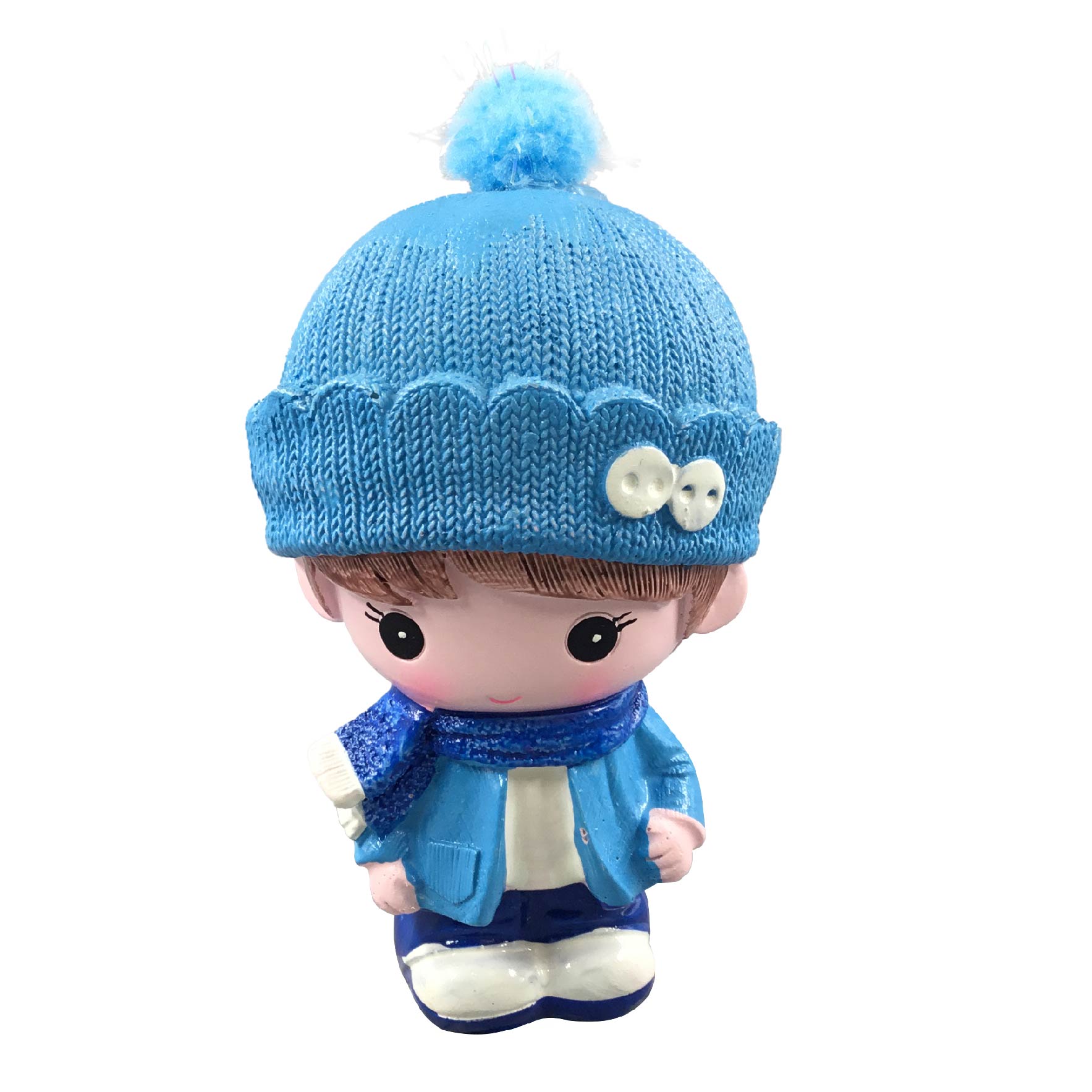 Resin Cute Blue Soft Ball' Beanie Boy Figure Blue Scarf