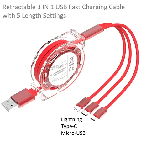 Retractable 3 IN 1 USB Fast Charging Cable with 5 Length Settings