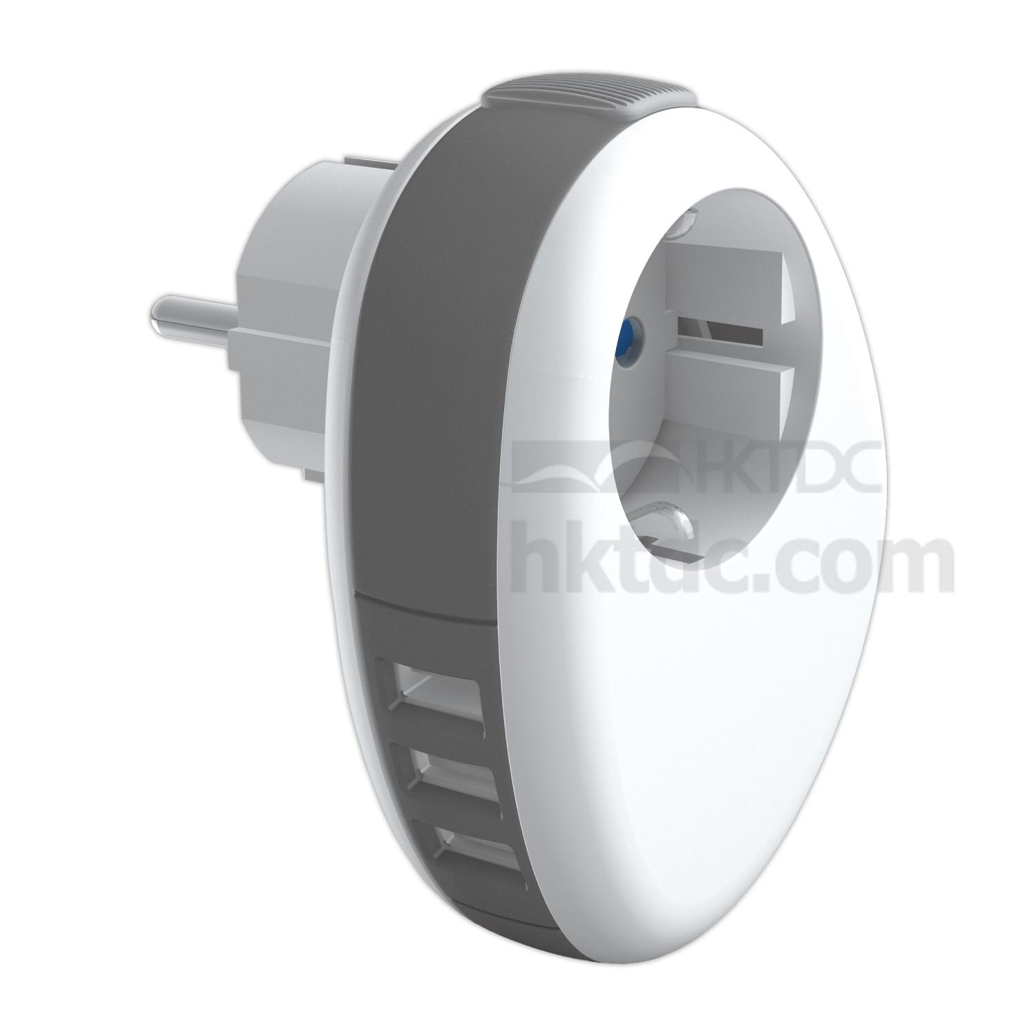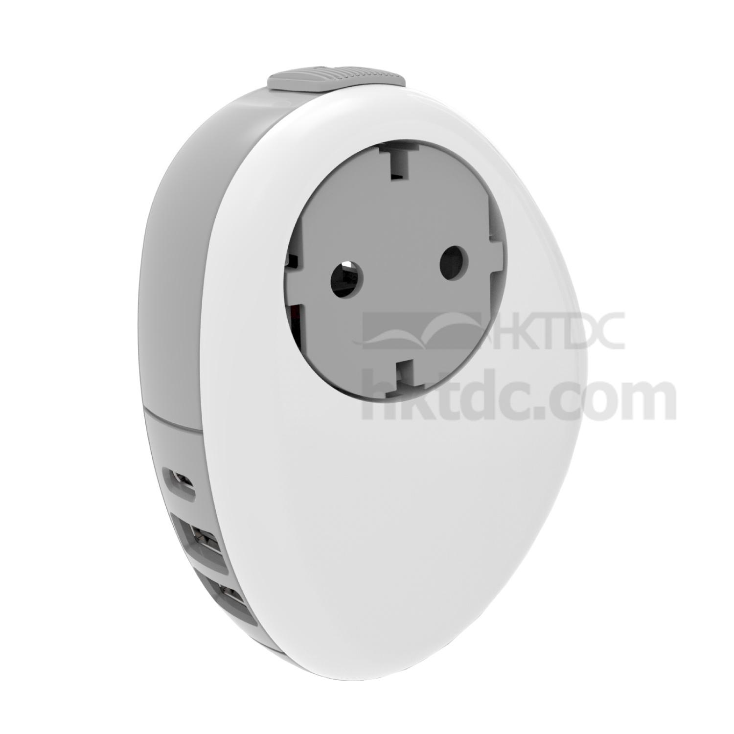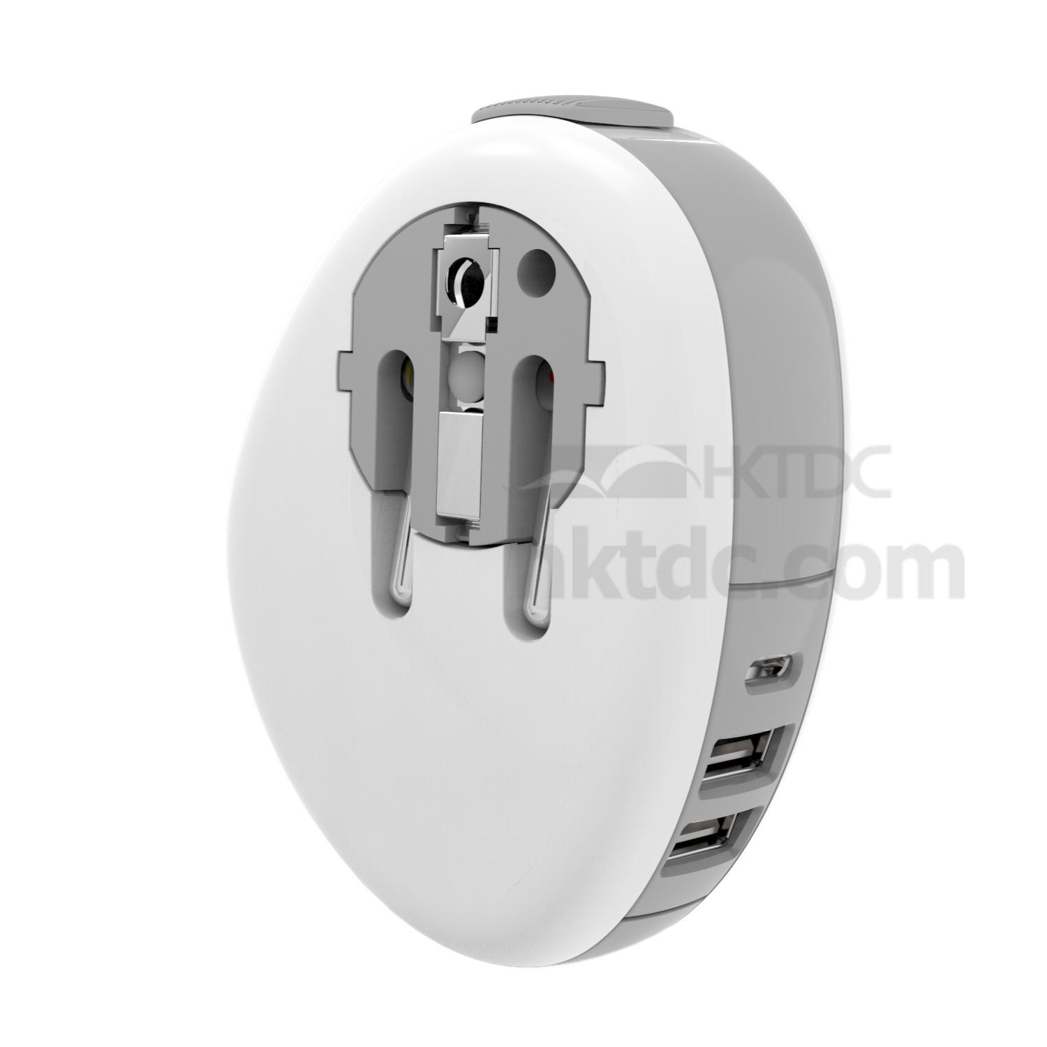 To release the plug, push the centre part of the plug and unfold the Schuko prongs