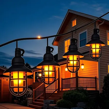 Retro LED Simulated Flame Lantern String Lights Waterproof Outdoor Party Tent Camping Courtyard Decoration