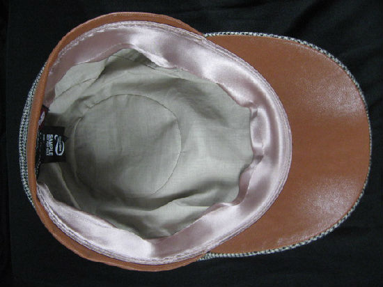 Remark: leather panel at back, satin sweatband, leather under peak.