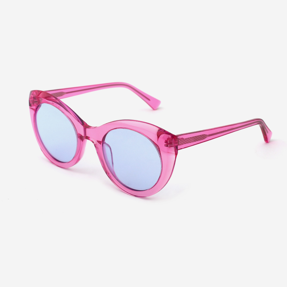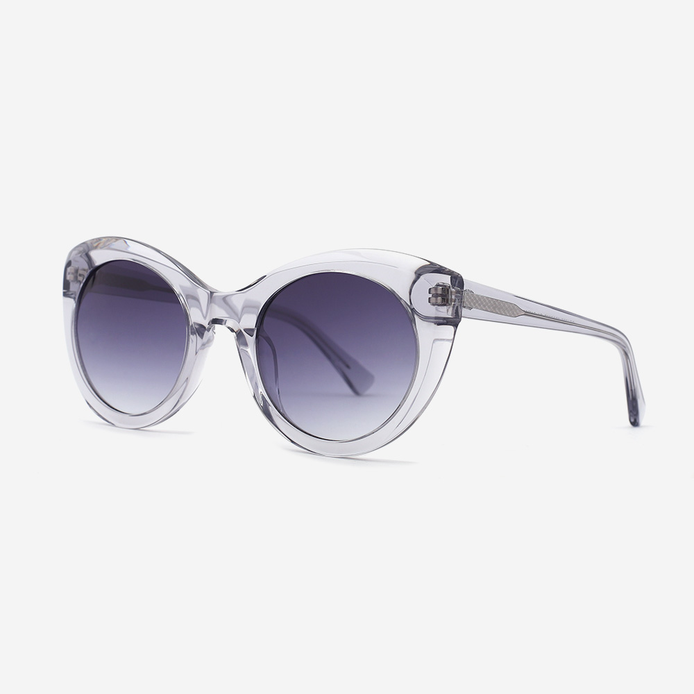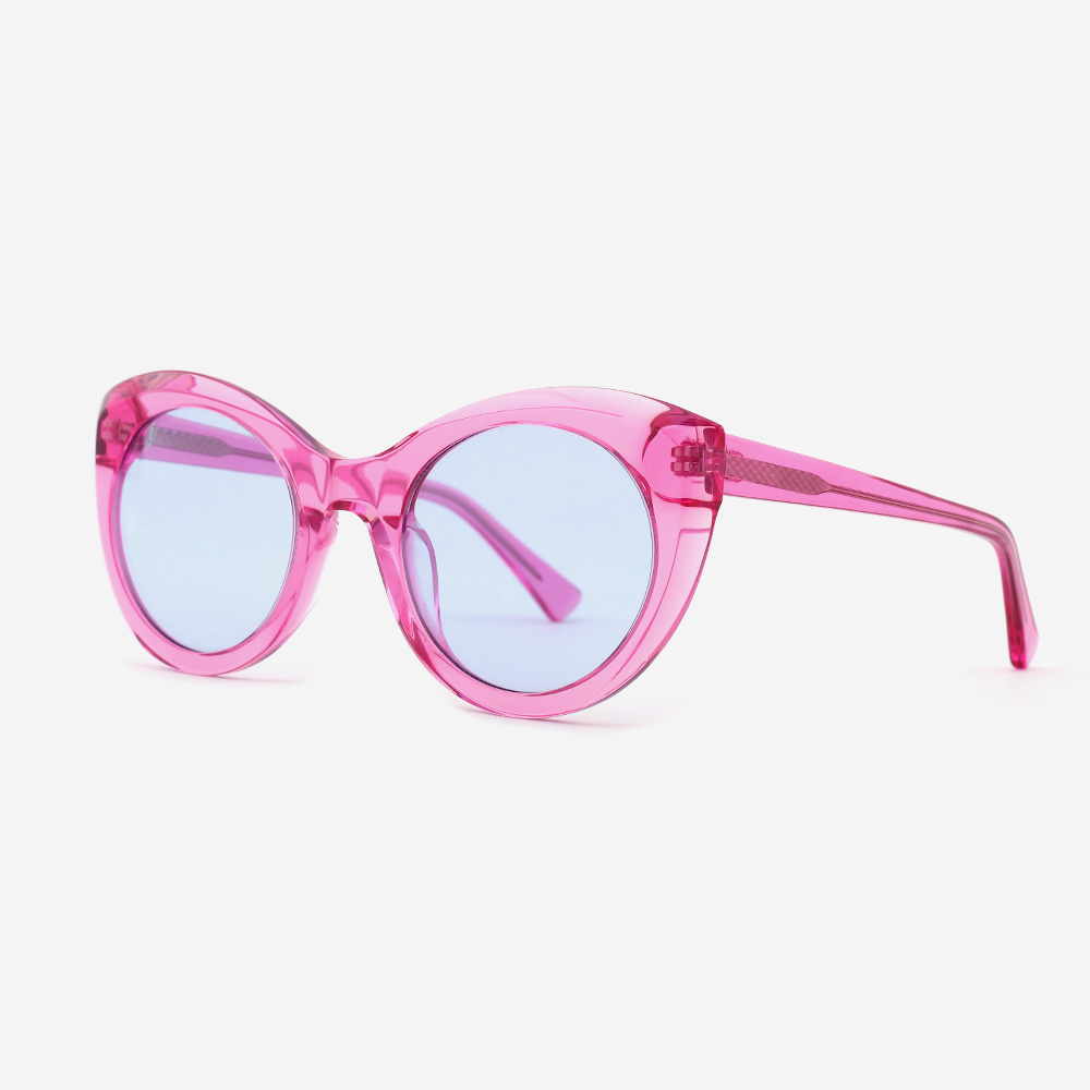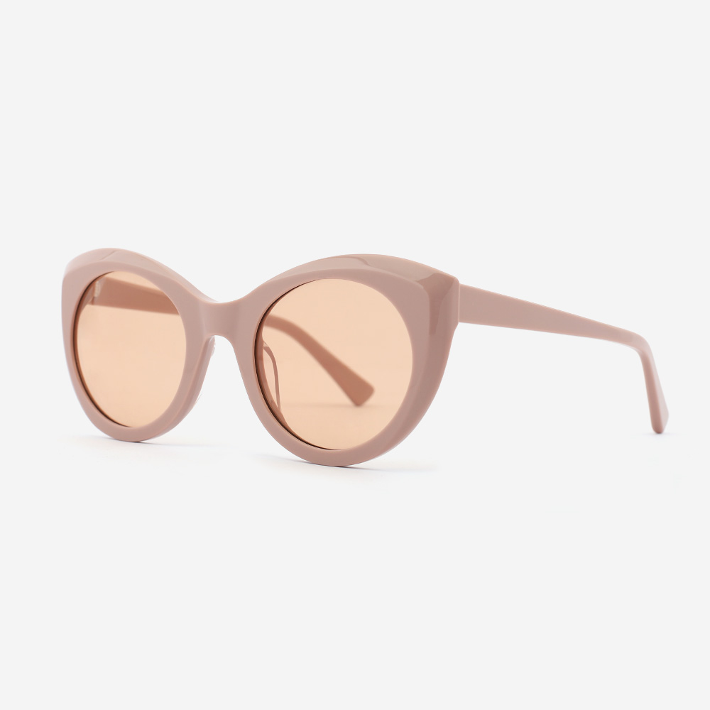 Round cat-eye sunglasses added with some dimensional sense, the front shape in bevel cutting, inspired by the latest fashion trends and contrasting with the vibrant color palette, for the city dwellers who love flashy models. With refinement and quality, the classic sunglasses also can improve your temperament and make you more faddish. High-end lenses, UV400 protection and high visual comfort. Specially for femal applying different occasions.