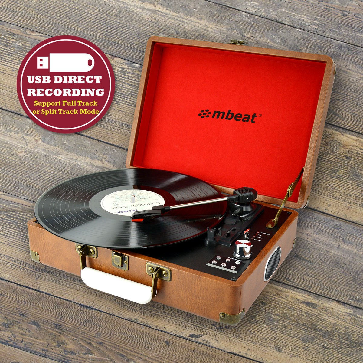 Product Features: Elegant retro briefcase styled vintage brown design Direct recording Vinyl to USB disk with ease. Support full track or segment track recording. Support 33/45/78rpm Vinyl records. Built-in internal speakers, Aux In & Aux Out. No software installation or PC required. Product Specifications: Support vinyl type: 33, 45, 78rpm Speakers: 2 x built-in speakers