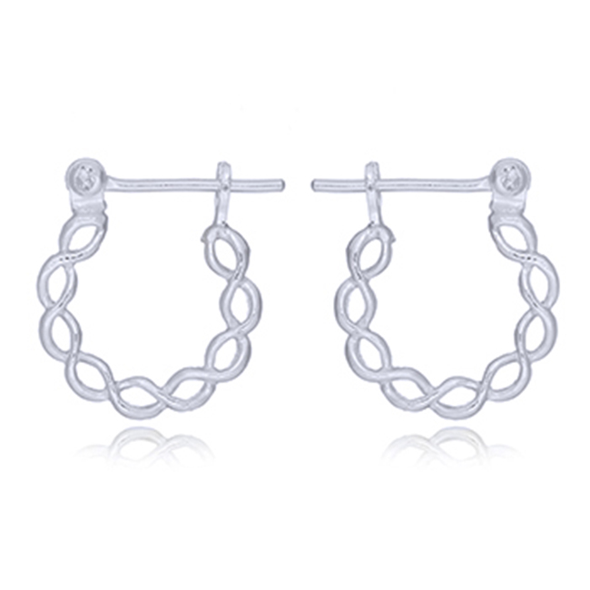 Rhodium Plated Silver Circle Twined Hoop Earrings