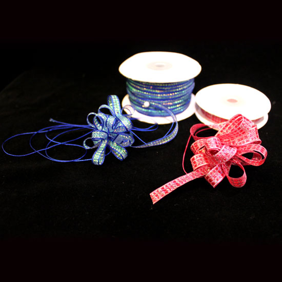 This dainty ribbon bow features a fancy, glitter laser surface paired with trims of solid colors. Made with thin ribbons, this ribbon bow is especially charming and remarkable as multiple loops can be tied. Charming and glamorous, this ribbon bow comes in handy in gift wrapping.