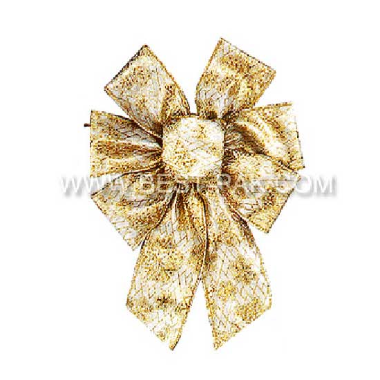 This stunning ribbon bow features a golden-toned exterior with glittering accents. It showcases excellent craftsmanship with great attention to details. The beautiful ribbon bow will add a luxurious touch to any gift packaging.
