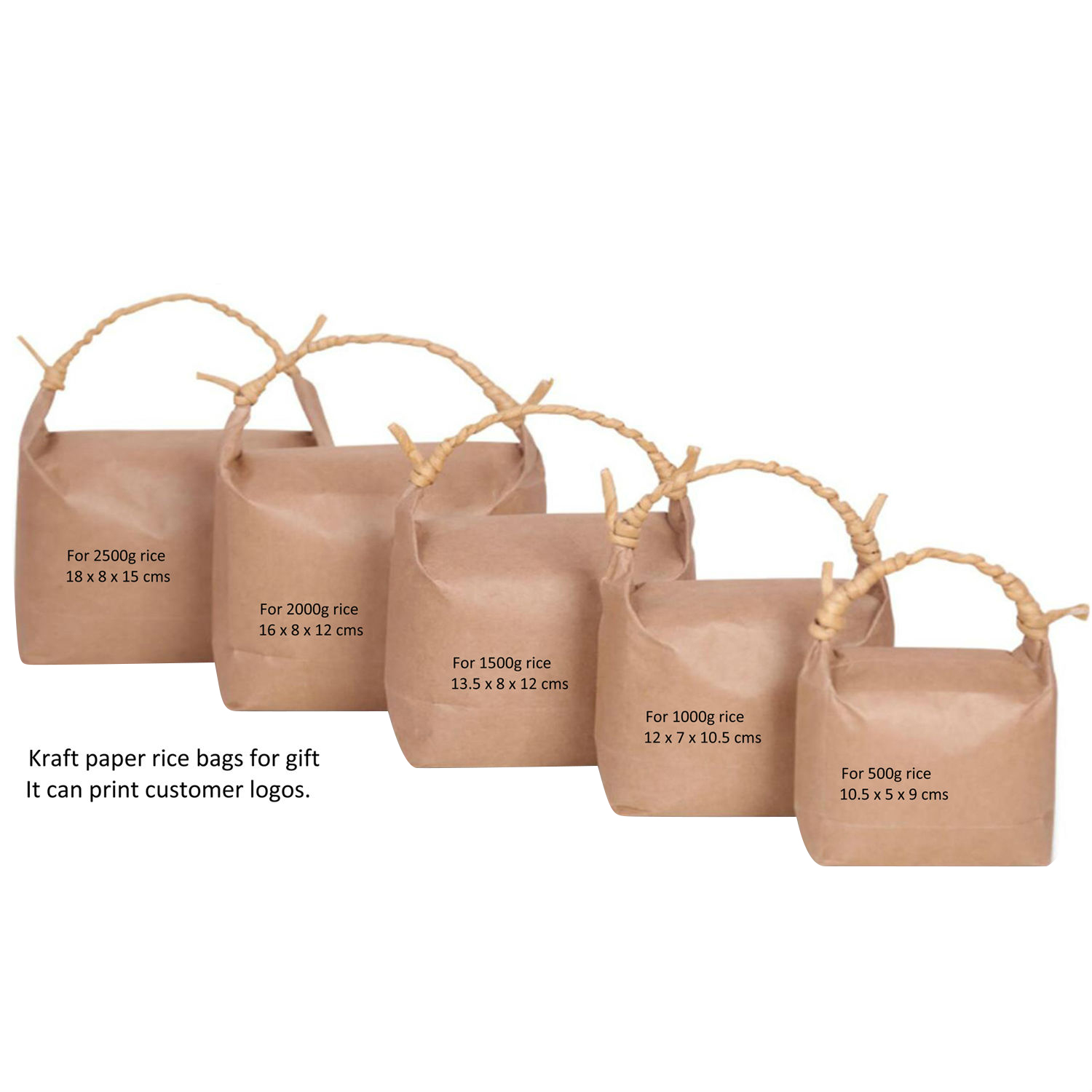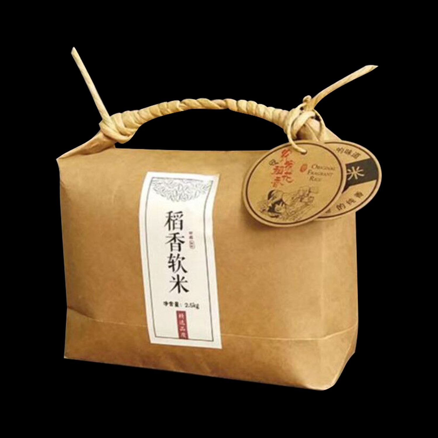 This bag is made of kraft paper and is designed for rice packaging use. It can be printed with customer’s logos on the exterior and has a handle on top for carrying. The rice bag adds a classy touch to rice brands and is available in different capacities.
