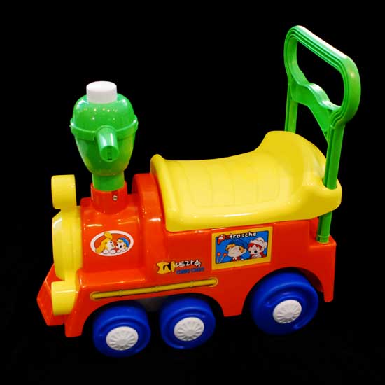 This ride-on locomotive comes with a removable push bar. It features horn sounds for added fun and joy. This ride-on locomotive is built to last for years.