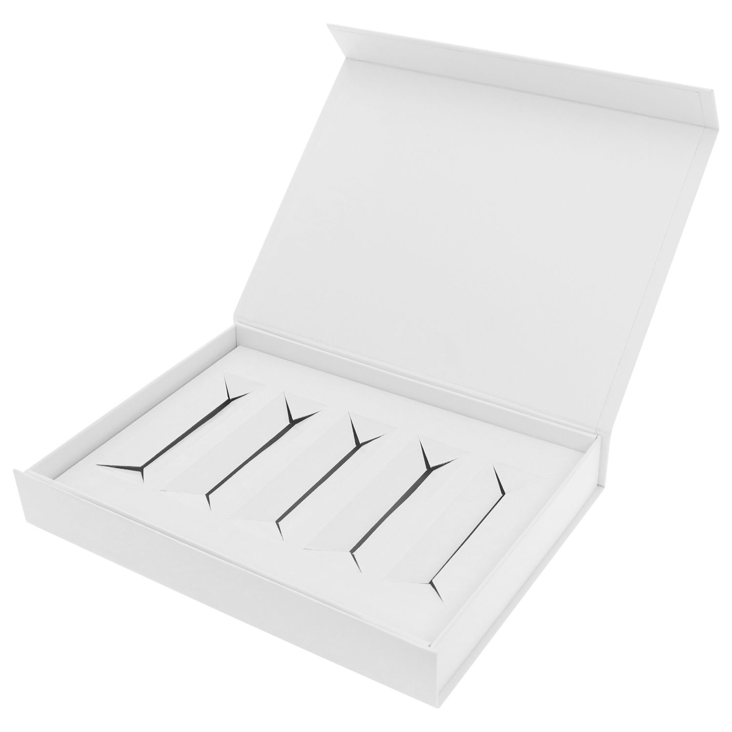 - Printing / processing: matt lamination, silver foil stamp, box-gluing, paper insert for holding bottles.