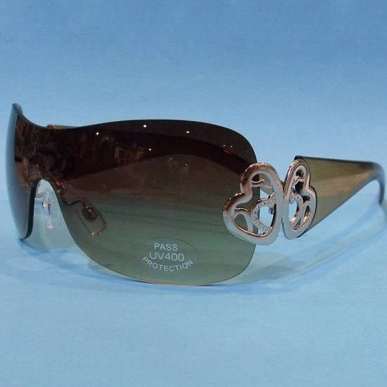 The chic pair of sunglasses comes with an oval-shape shielding style and taper skull temples. The lens and temples are gradient brown tinted with a flash mirror finish. Also featured are the silvery hinges delicately crafted in an appealing heart shape with dazzling stone embellishments. These great glasses are sure to accentuate your look on any sunny days.