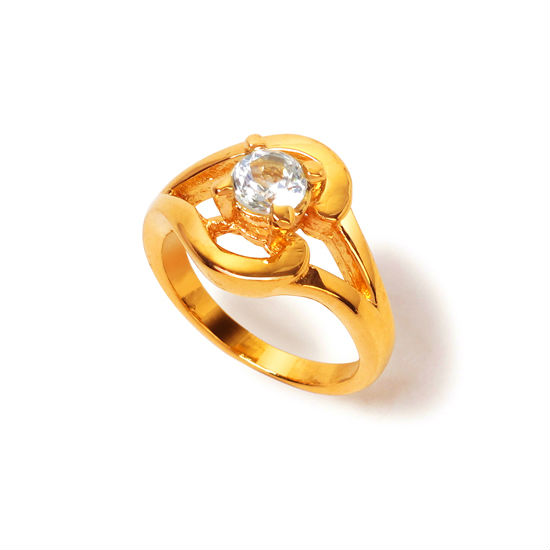 Awe your bride-to-be with this exquisite ring depicting craftsmanship of the highest order. The ring sparkles with a stunningly reflective centerpiece that is securely held with a four-prong setting. Accentuating with few splits at the shank, this gilt ring dresses her hand with overwhelming luxe.