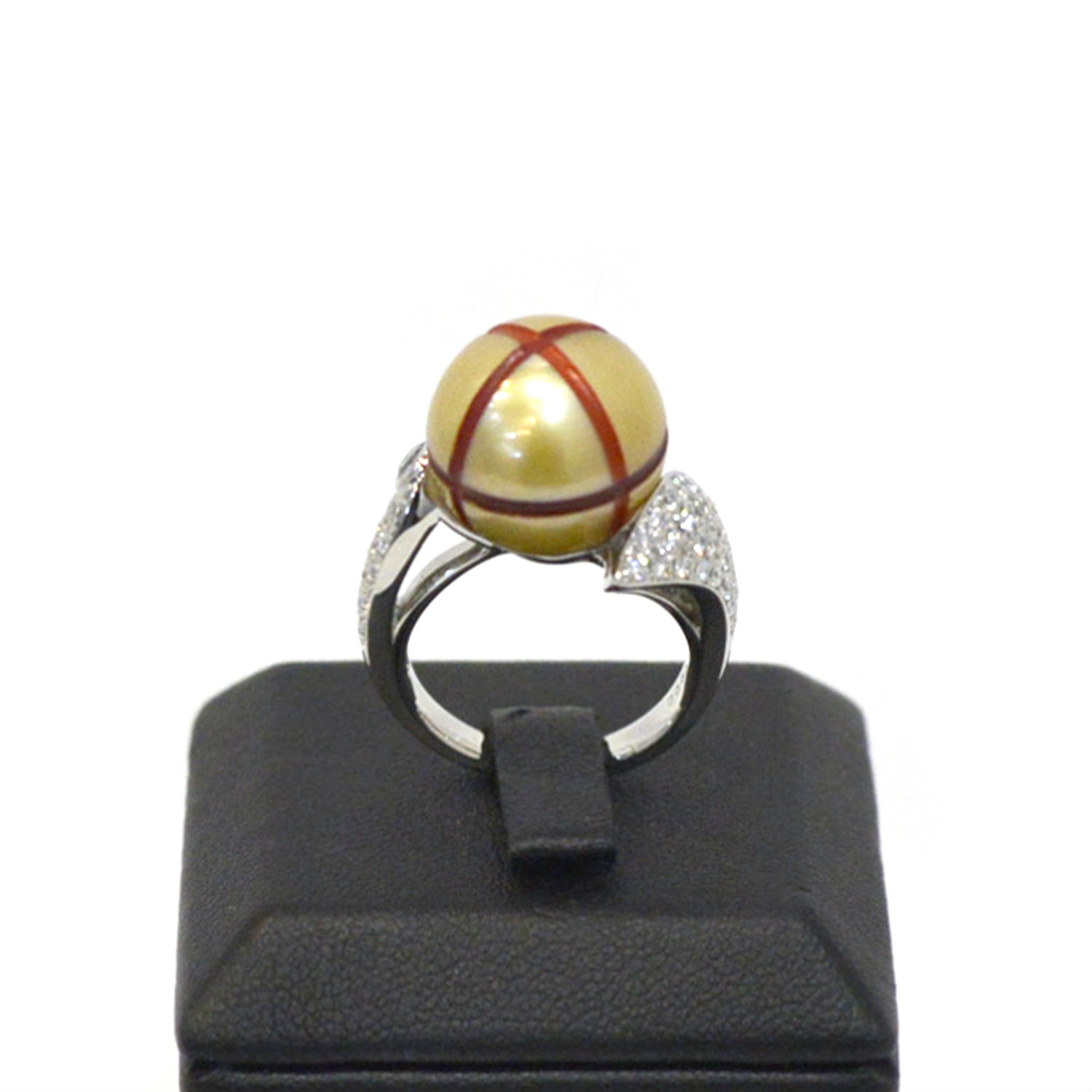 Material: platinum, natural salt water golden pearl, diamond