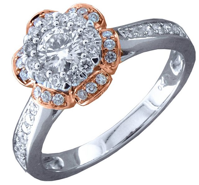 18 Karat Two Tone Ring in White & Rose Gold in 4.50gms and 0.75cts Diamond White