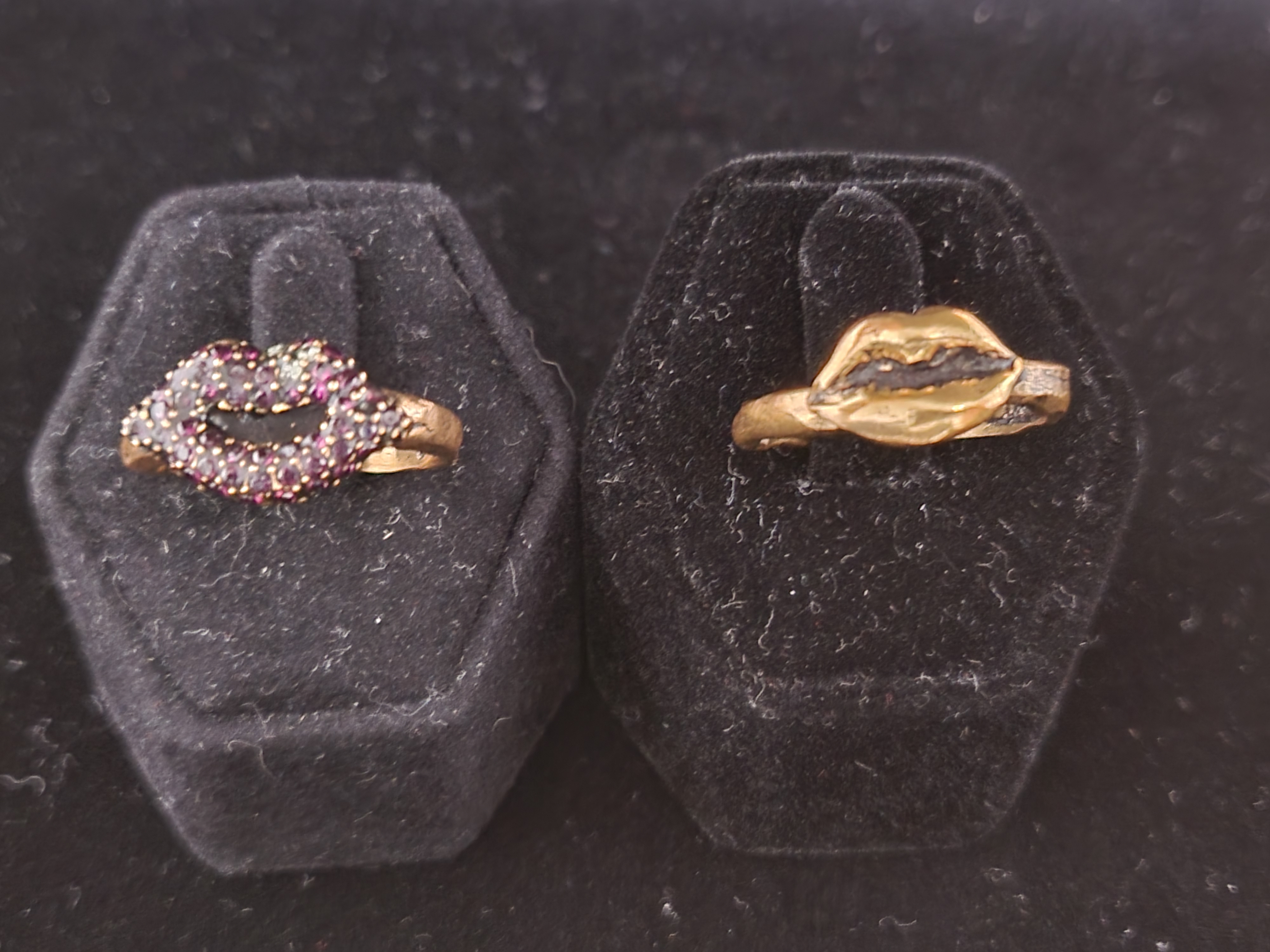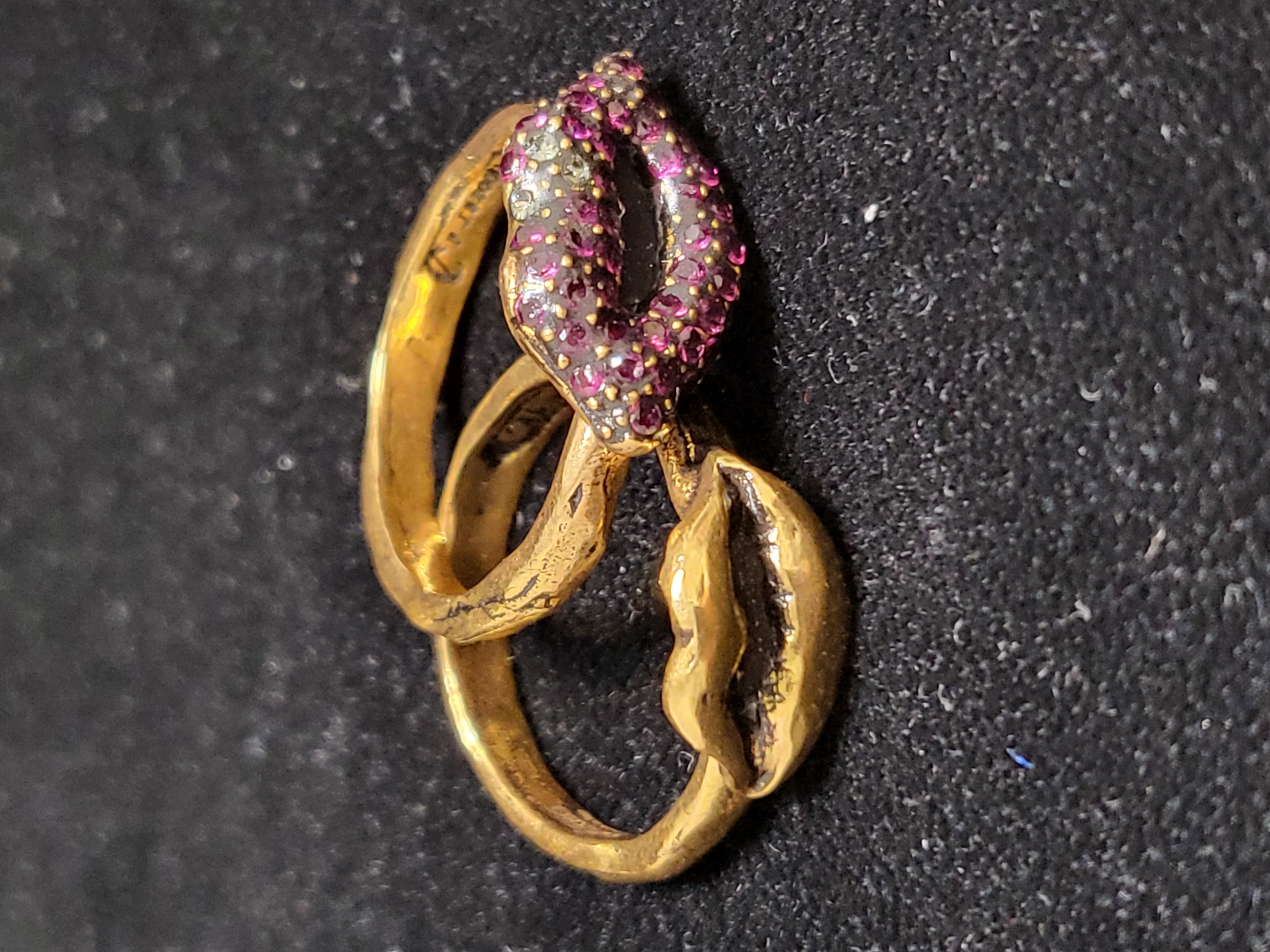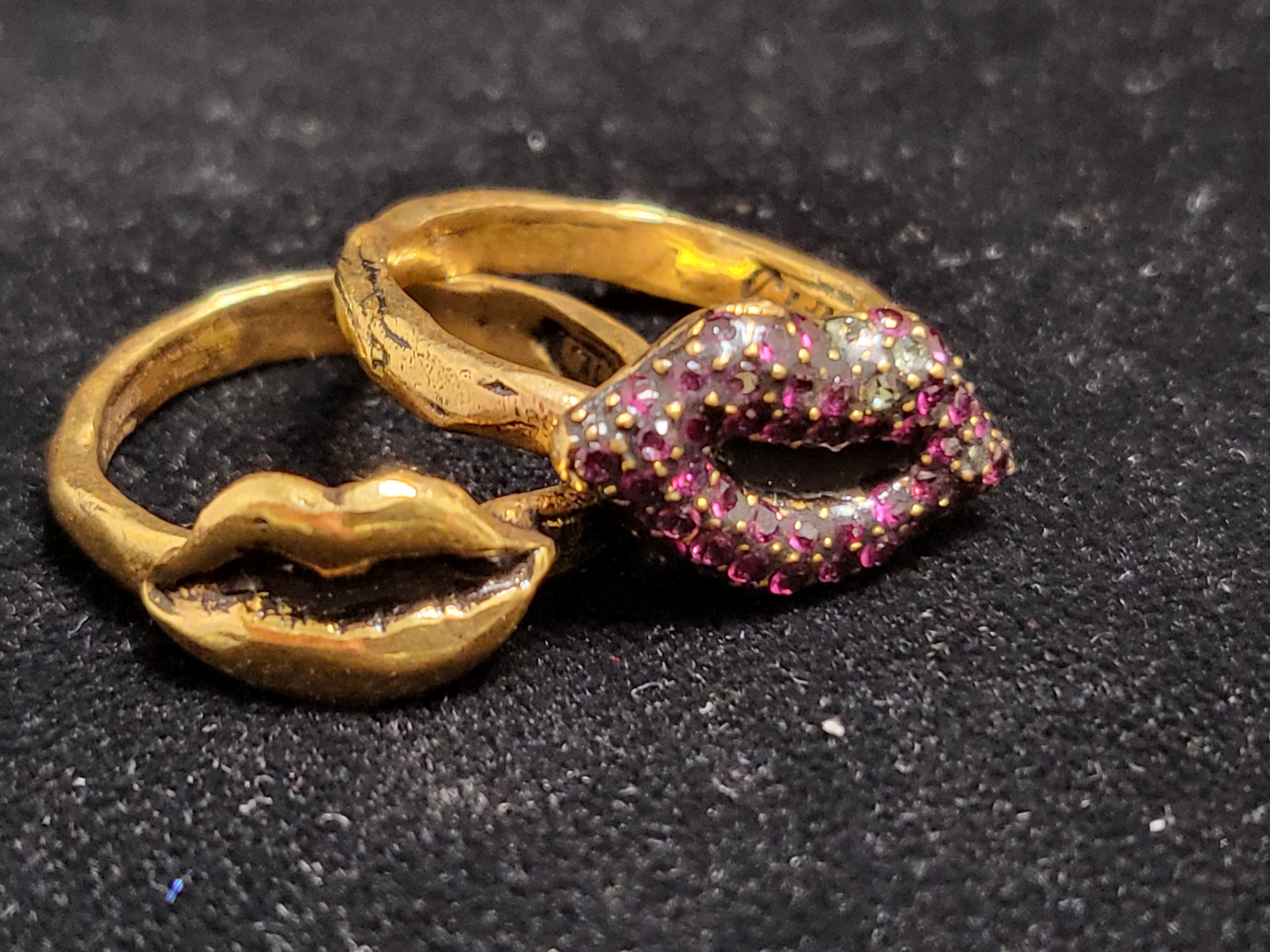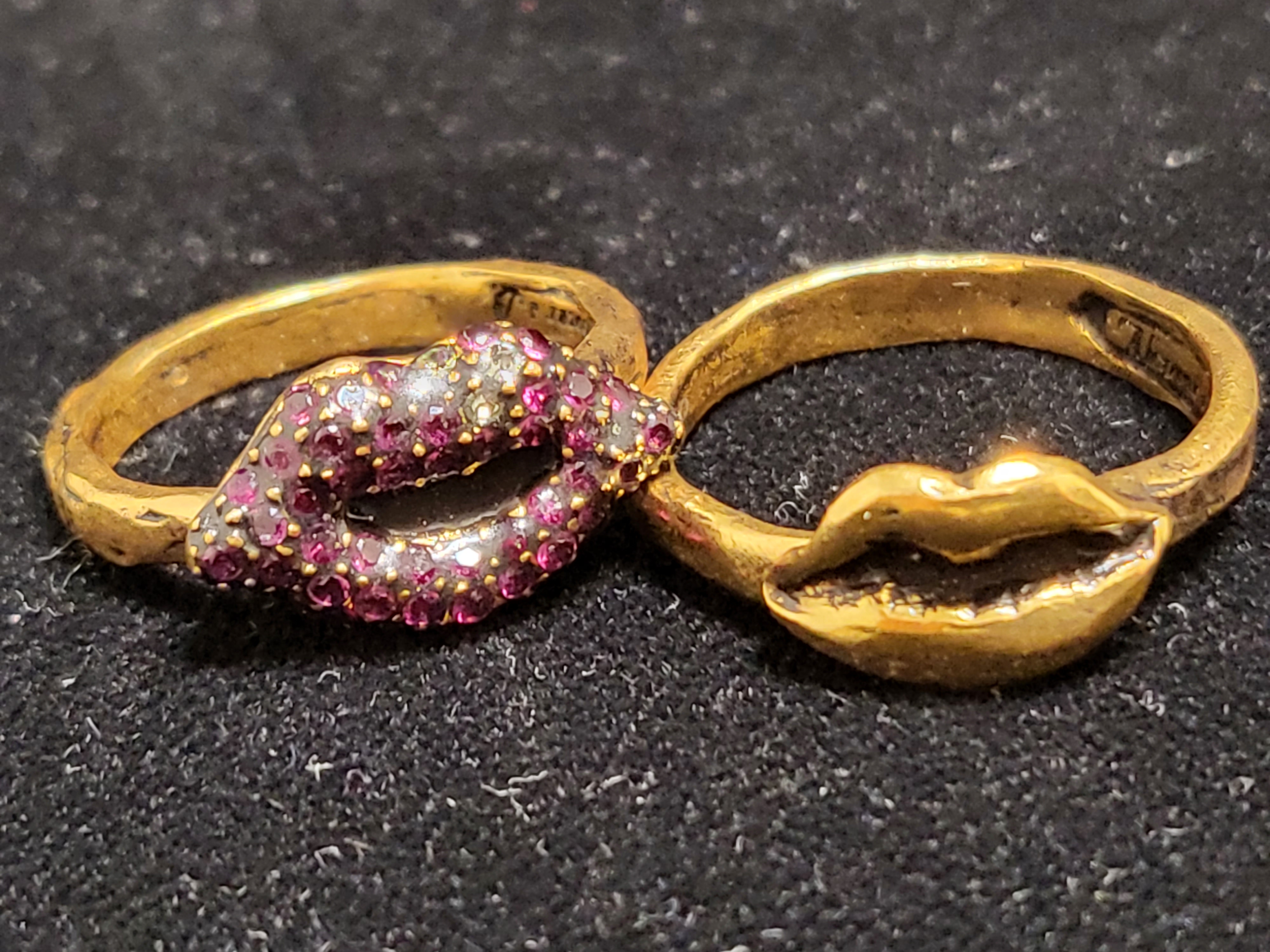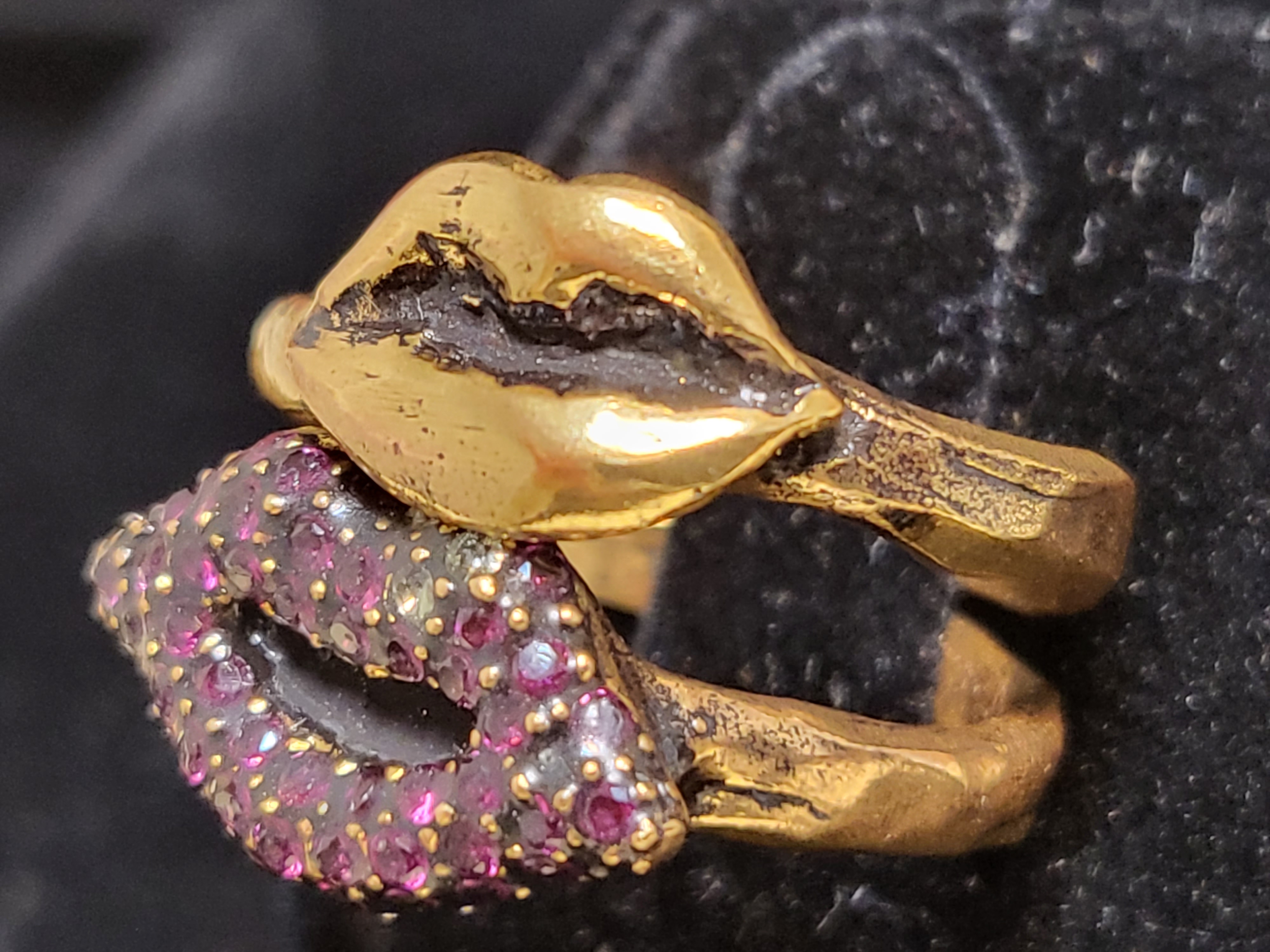 - A set of ring red lip with crystal and gold-plated