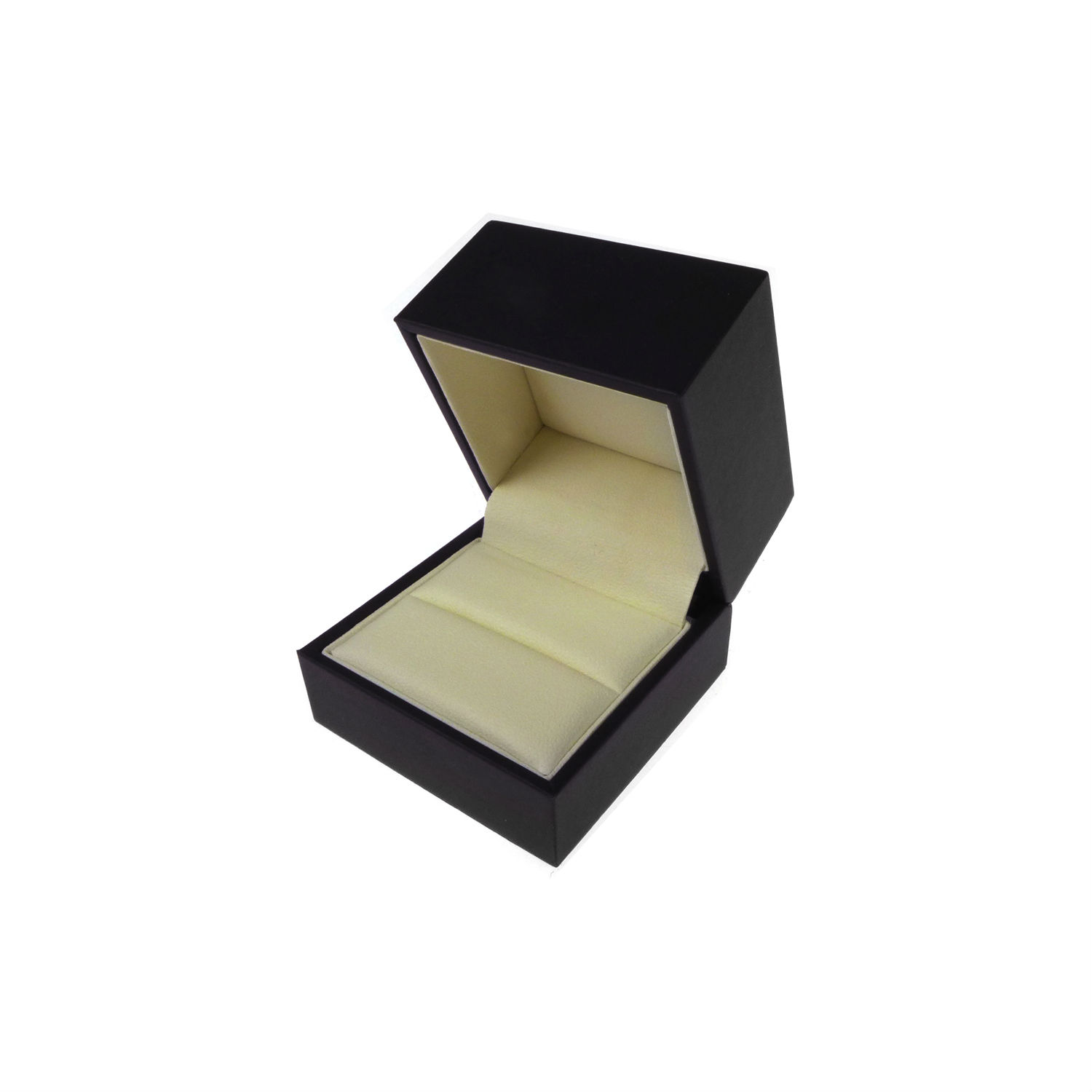 Embracing its minimalistic design with a soft top gathering, this ring box here engages a standard square box construction of well-defined contour. Further portrayed with a flip-up top for effortless opening, it provides more than enough space to safeguard your precious ring.