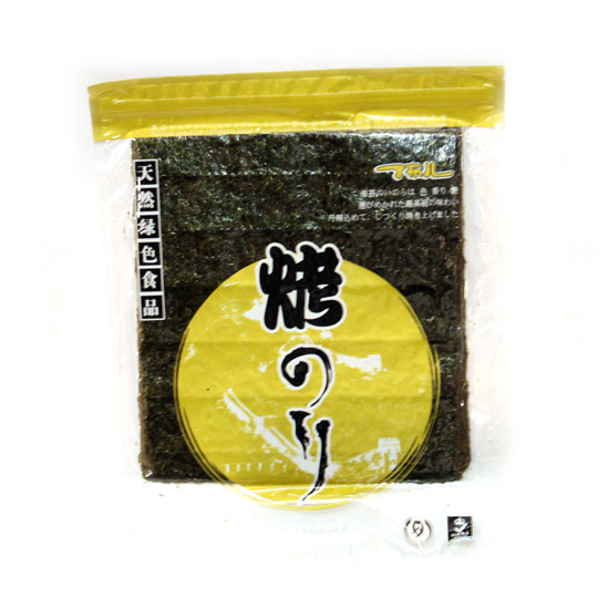 Here comes a pack of roasted seaweed sheets which can be directly eaten as snacks. The roasted seaweed is crunchy and salty and has a real depth of flavor. It contains high proportions of iodine, carotene, vitamins A, B and C, as well as significant amounts of calcium and iron.