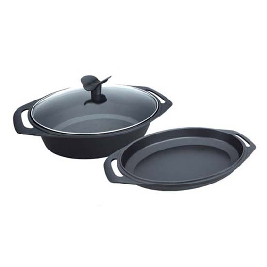 This roaster set comes with 2 roasters in different sizes to suit your personal preference. The durable lid is transparent for you to examine the cooking process conveniently. This roaster set is easy to clean and maintain.